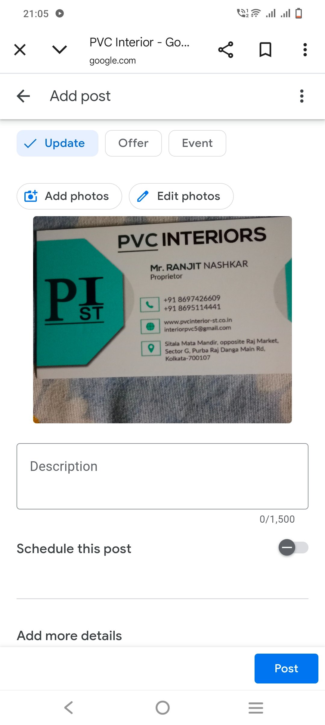 This Address is Permanent Address. We are a Kolkata-based interior design service specializing in PVC interior solutions for homes and offices. Our expertise includes living rooms, kitchens, bedrooms, bathrooms, wardrobes, cabinets, TV units, mandirs, office spaces, and custom furniture. We focus on durable, waterproof, and low-maintenance PVC materials while promoting sustainability and reuse. From smart space planning to quality execution, we deliver modern, functional, and eco-friendly interiors across Kolkata and surrounding areas